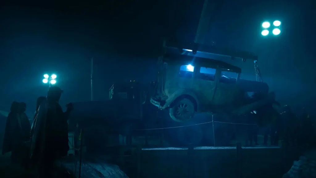 Depois do suspense plantado no episódio 2, era apenas questão de tempo até que o massacre da Gangue Bradley fosse citado explicitamente. Quando os militares estão fazendo as escavações, encontram o Cadillac da gangue, que foi “desmontado até os parafusos, sem que se encontrasse nada além de manchas de sangue e buracos de bala”.
