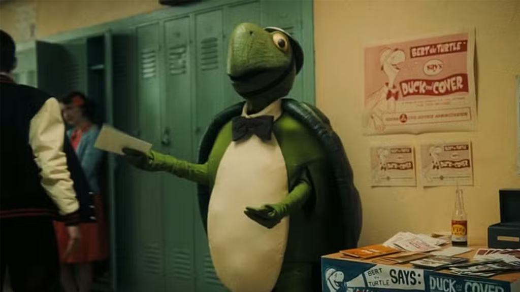 No romance, Maturin se apresenta a Bill Denbrough quando ele tenta envolvê-la no Ritual de Chüd em 1958. Por sua vez, em Bem-vindos a Derry, logo no primeiro episódio, a série já começa a semear essa presença. O mascote da Derry High School é “Bert, a Tartaruga”, que repete seu slogan “abaixem-se e protejam-se” no caso de um desastre nuclear. E a imagem da tartaruga como símbolo de proteção, resistência e sobrevivência conversa diretamente com o papel que Maturin desempenha no livro.